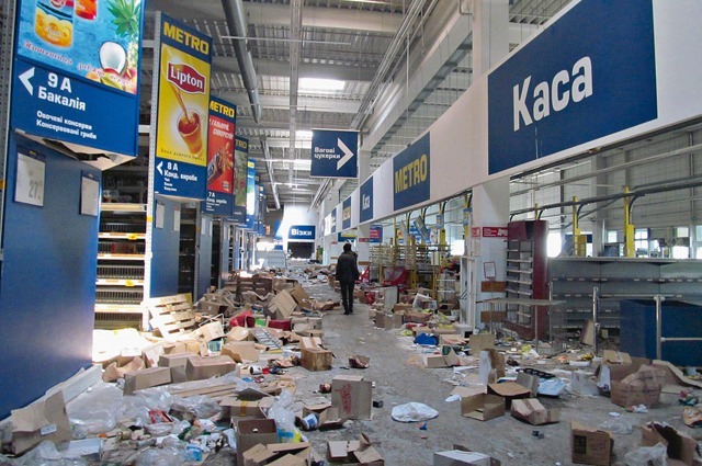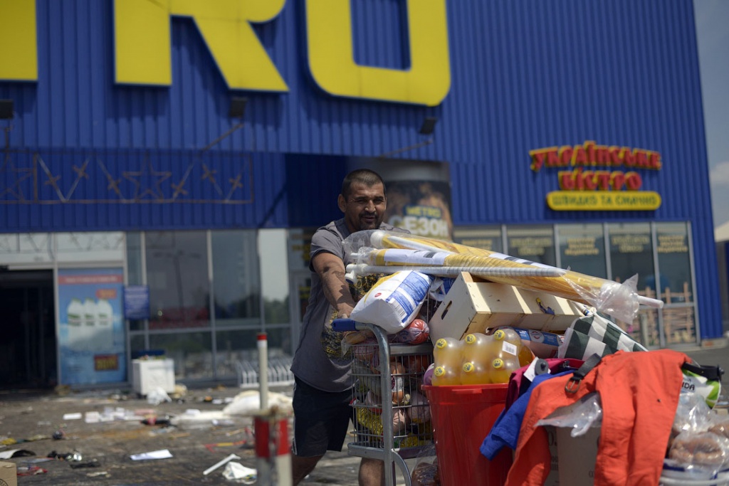 Жители накапливают продукты и припасы и спят в подвалах. Согласно сообщениям, Луганск практически окружен и обесточен.
