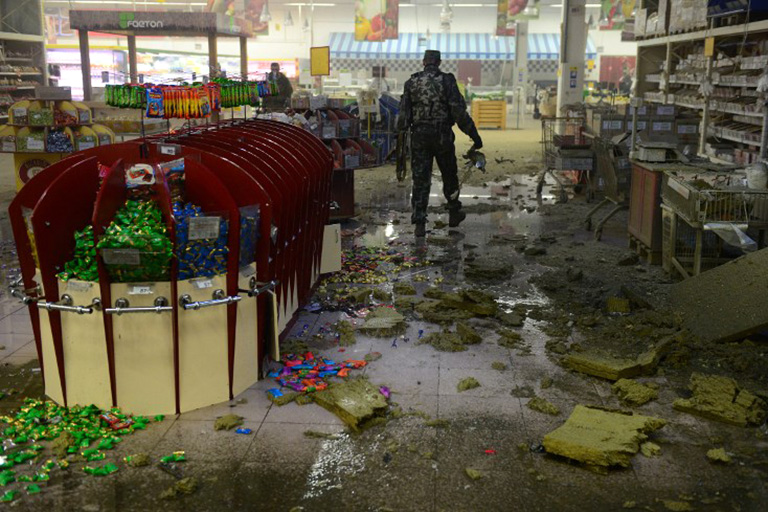 В результате непрерывных обстрелов пострадали несколько жилых домов, школа и супермаркет, сообщает местное телевидение.