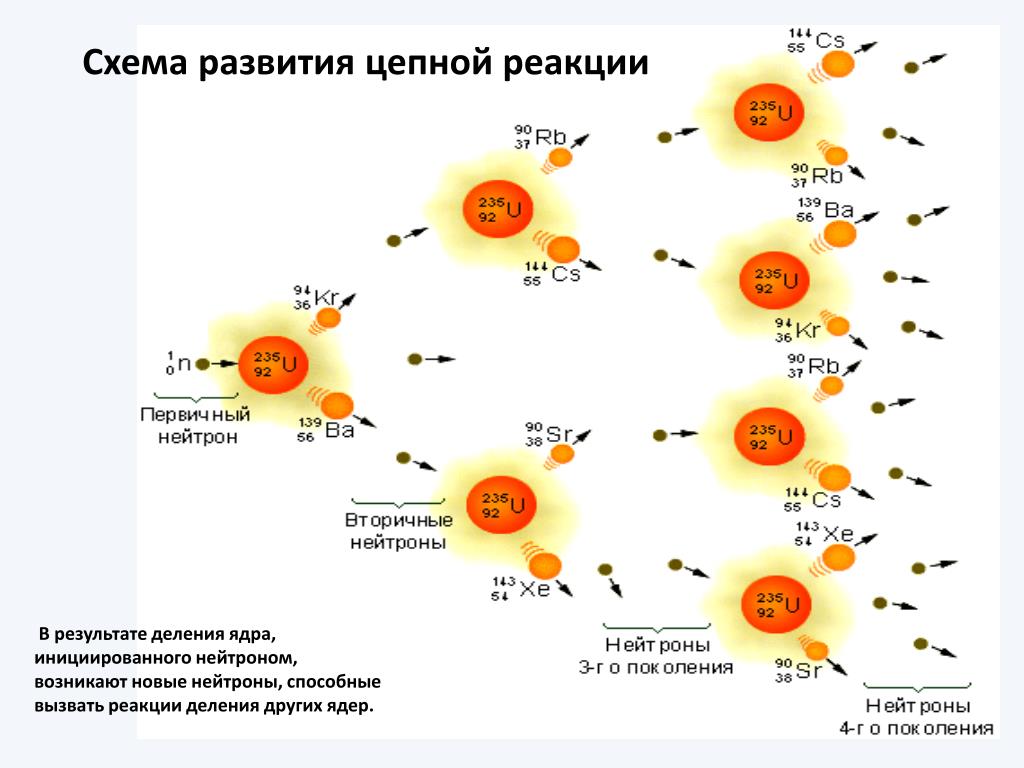 Π―Π΄Π΅ΡΠ½ΠΎΠ΅ Π΄Π΅Π»Π΅Π½ΠΈΠ΅ ΠΏΡΠΎΠΈΠ·Π²ΠΎΠ΄ΠΈΡ Π°ΡΠΎΠΌΠ½ΡΡ Π±ΠΎΠΌΠ±Ρ, ΠΎΡΡΠΆΠΈΠ΅ ΠΌΠ°ΡΡΠΎΠ²ΠΎΠ³ΠΎ ΡΠ½ΠΈΡΡΠΎΠΆΠ΅Π½ΠΈΡ, ΠΈΡΠΏΠΎΠ»ΡΠ·ΡΡΡΠ΅Π΅ ΡΠ½Π΅ΡΠ³ΠΈΡ, Π²ΡΡΠ²ΠΎΠ±ΠΎΠΆΠ΄Π°Π΅ΠΌΡΡ ΠΏΡΠΈ ΡΠ°ΡΡΠ΅ΠΏΠ»Π΅Π½ΠΈΠΈ Π°ΡΠΎΠΌΠ½ΡΡ ΡΠ΄Π΅Ρ. ΠΠΎΠ³Π΄Π° ΠΎΠ΄ΠΈΠ½ ΡΠ²ΠΎΠ±ΠΎΠ΄Π½ΡΠΉ Π½Π΅ΠΉΡΡΠΎΠ½ ΠΏΠΎΠΏΠ°Π΄Π°Π΅Ρ Π² ΡΠ΄ΡΠΎ ββΠ°ΡΠΎΠΌΠ° ΡΠ°Π΄ΠΈΠΎΠ°ΠΊΡΠΈΠ²Π½ΠΎΠ³ΠΎ ΠΌΠ°ΡΠ΅ΡΠΈΠ°Π»Π°, ΡΠ°ΠΊΠΎΠ³ΠΎ ΠΊΠ°ΠΊ ΡΡΠ°Π½ ΠΈΠ»ΠΈ ΠΏΠ»ΡΡΠΎΠ½ΠΈΠΉ, ΠΎΠ½ Π²ΡΠ±ΠΈΠ²Π°Π΅Ρ Π΅ΡΠ΅ Π΄Π²Π° ΠΈΠ»ΠΈ ΡΡΠΈ Π½Π΅ΠΉΡΡΠΎΠ½Π°.