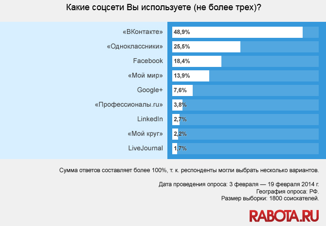 ΠΠ΄Π΅ΡΡ ΠΌΠΎΠΆΠ½ΠΎ Π²ΡΠ΄Π΅Π»ΠΈΡΡ Π΄Π²ΡΡ Π»ΠΈΠ΄Π΅ΡΠΎΠ² – Viadeo ΠΈ LinkedIn, Ρ ΠΏΠΎΠΌΠΎΡΡΡ ΠΊΠΎΡΠΎΡΡΡ ΠΌΠΎΠΆΠ½ΠΎ ΠΈΡΠΊΠ°ΡΡ ΡΠ°Π±ΠΎΡΡ ΠΏΠΎ Π²ΡΠ΅ΠΌΡ ΠΌΠΈΡΡ. ΠΡΠ»ΠΈ Π°ΠΌΠ΅ΡΠΈΠΊΠ°Π½ΡΠΊΠ°Ρ ΡΠΎΡΡΠ΅ΡΡ LinkedIn Π±ΠΎΠ»ΡΡΠ΅ ΠΏΠΎΠ΄Ρ ΠΎΠ΄ΠΈΡ Π΄Π»Ρ ΡΡΡΠ΄ΠΎΡΡΡΡΠΎΠΉΡΡΠ²Π° Π² Π‘Π¨Π, ΡΠΎ ΡΡΠ°Π½ΡΡΠ·ΡΠΊΠ°Ρ Viadeo – Π΄Π»Ρ ΠΏΠΎΠΈΡΠΊΠ° ΡΠ°Π±ΠΎΡΡ Π² ΠΠ²ΡΠΎΠΏΠ΅, ΠΡΡΠΈΠΊΠ΅ ΠΈ ΠΠΈΡΠ°Π΅.