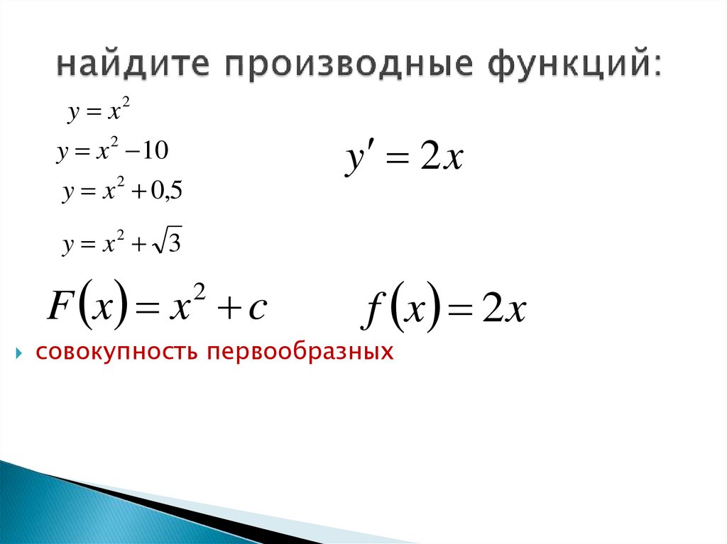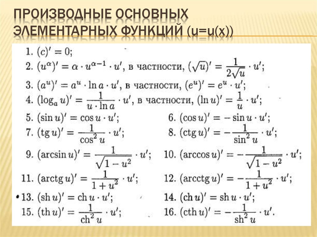 Начнём по порядку. В этом уроке рассмотрим таблицу производных.