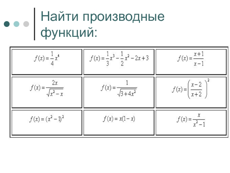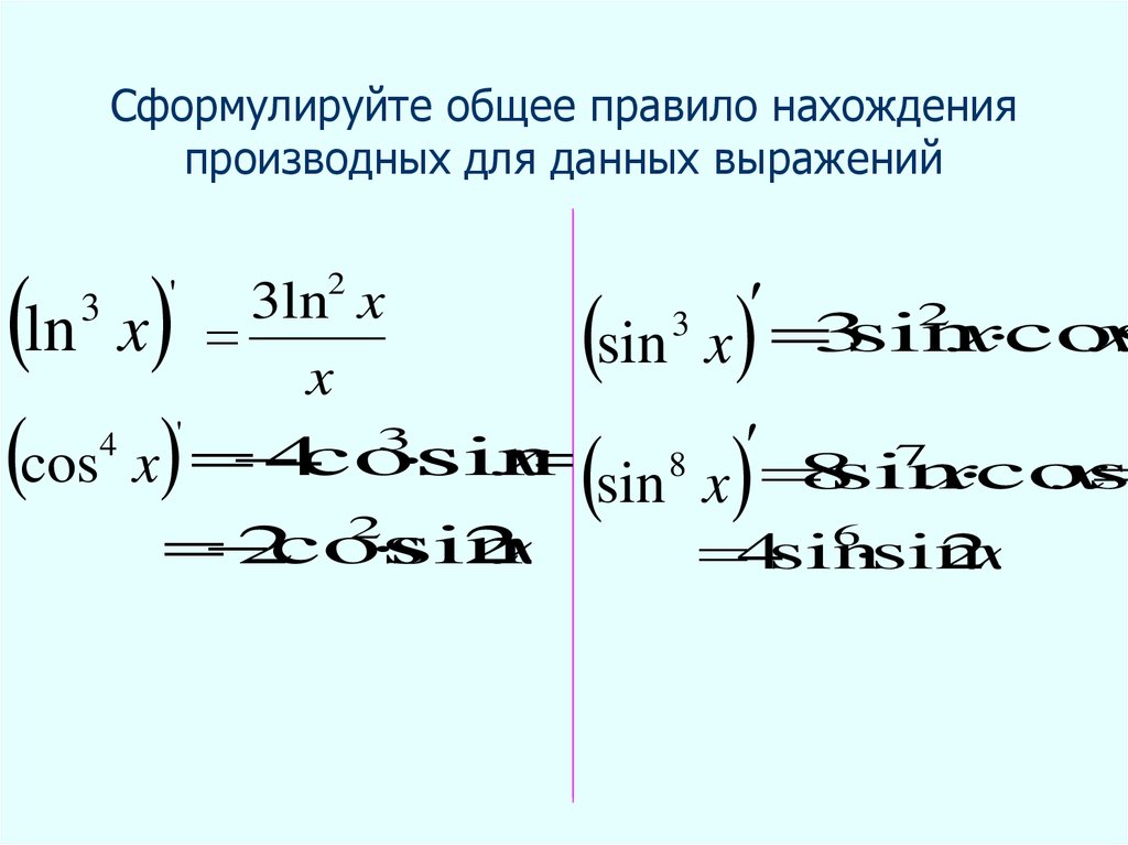 - Производная суммы (разности) двух функций равна сумме (разности) их производных:
