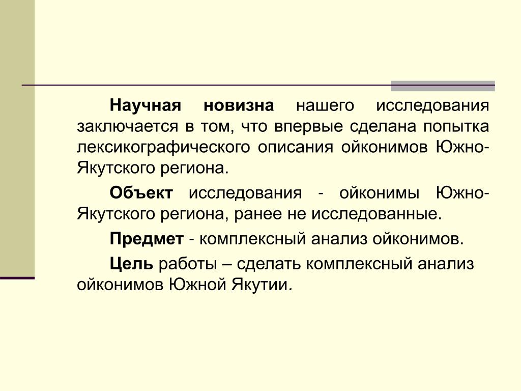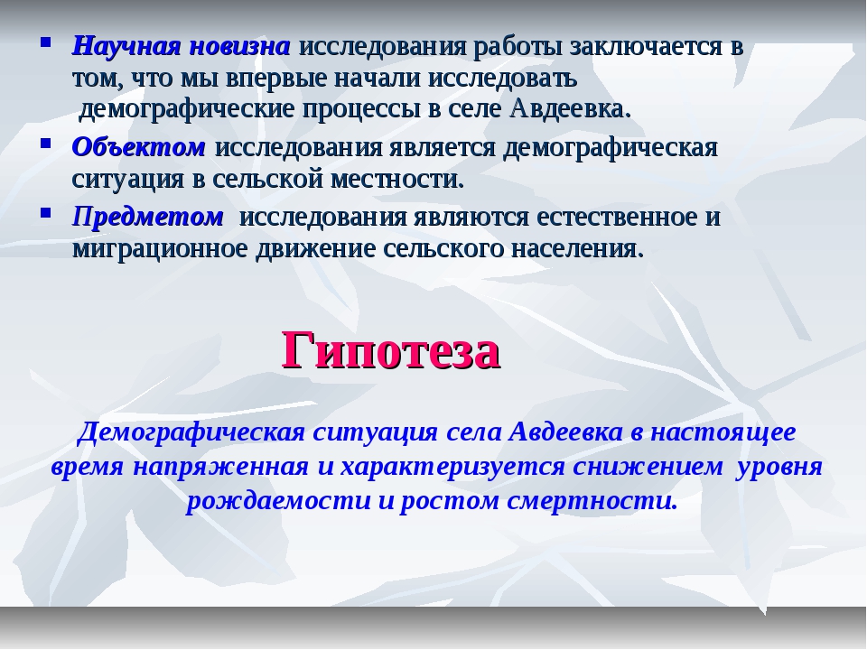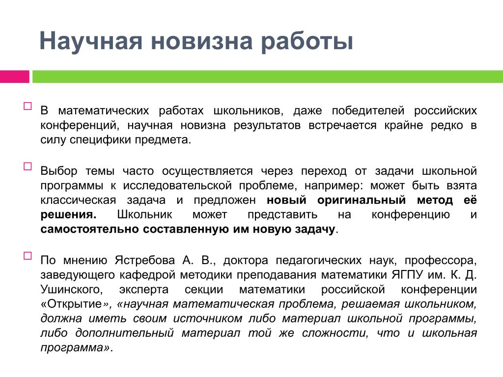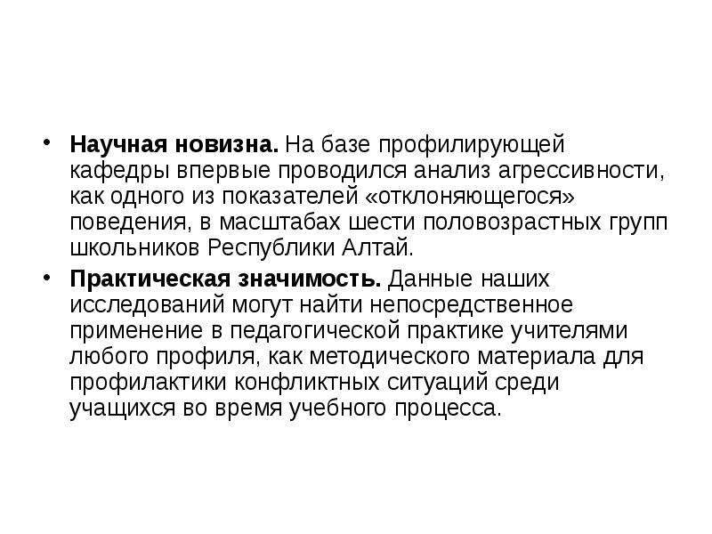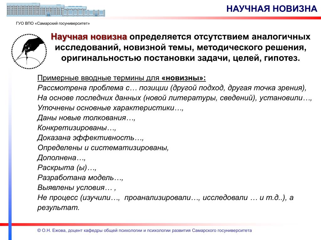 Любой проект должен содержать две обязательные части – введение и заключение. Именно они удостаиваются, как правило, наиболее пристального внимания аттестационной комиссии, поэтому информация о научной новизне должна быть представлена там с максимально выгодной стороны.