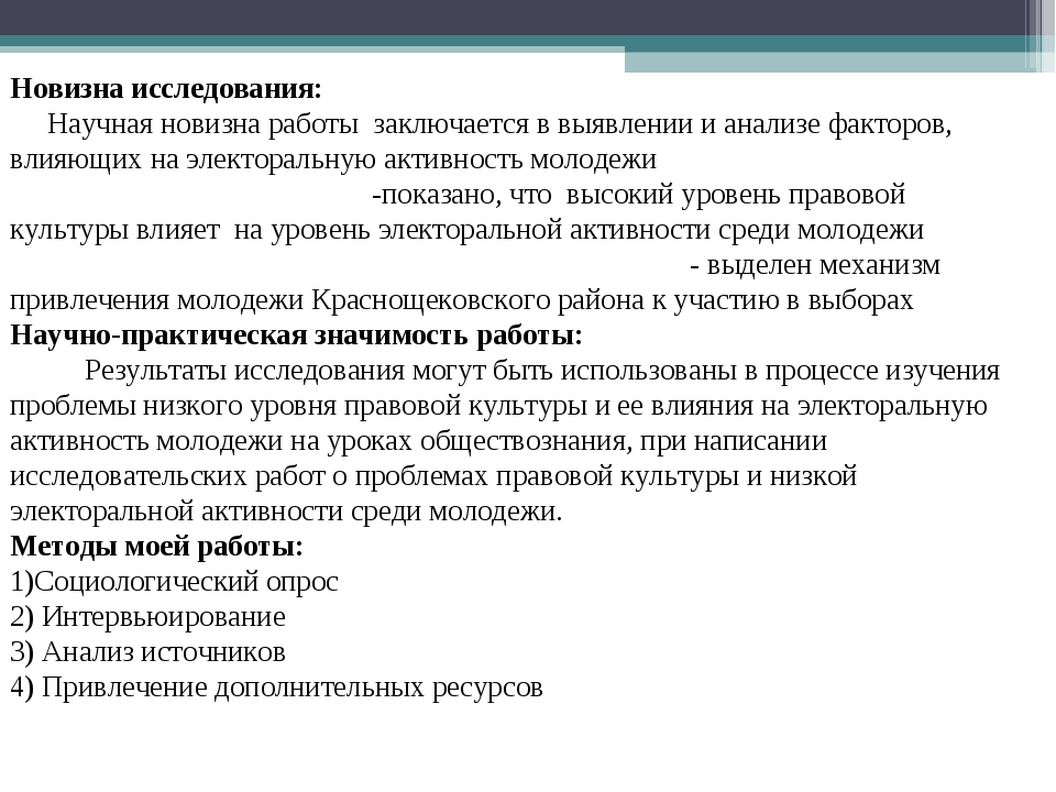 Вывод: Из содержания данной статьи теперь ты, читатель, знаешь, что такое научная новизна дипломной работы, и обязательно включишь данный аспект в свой проект.