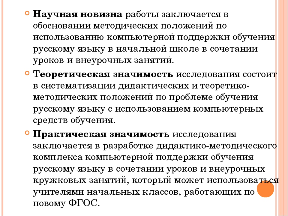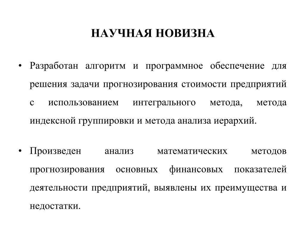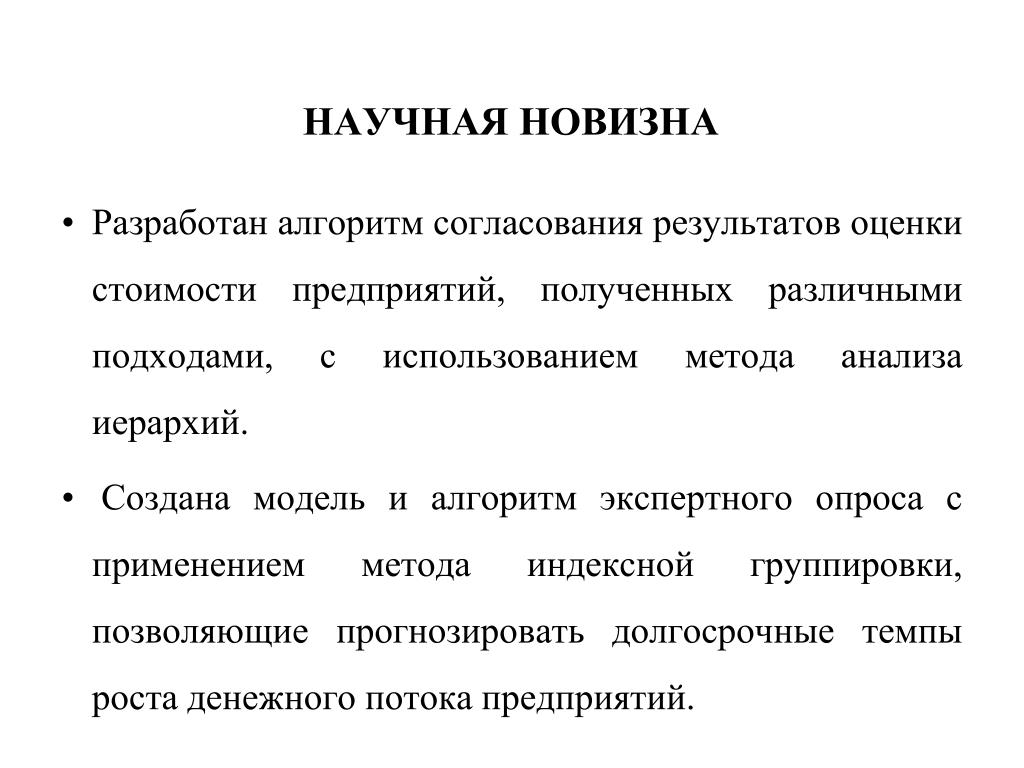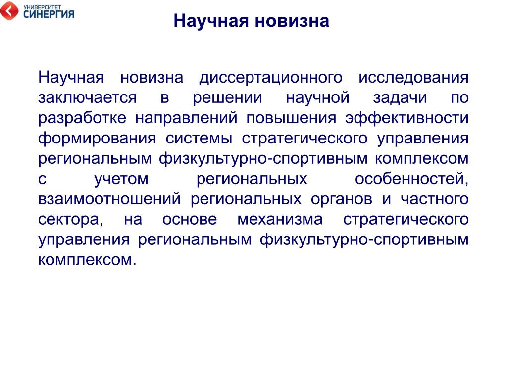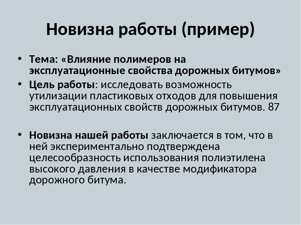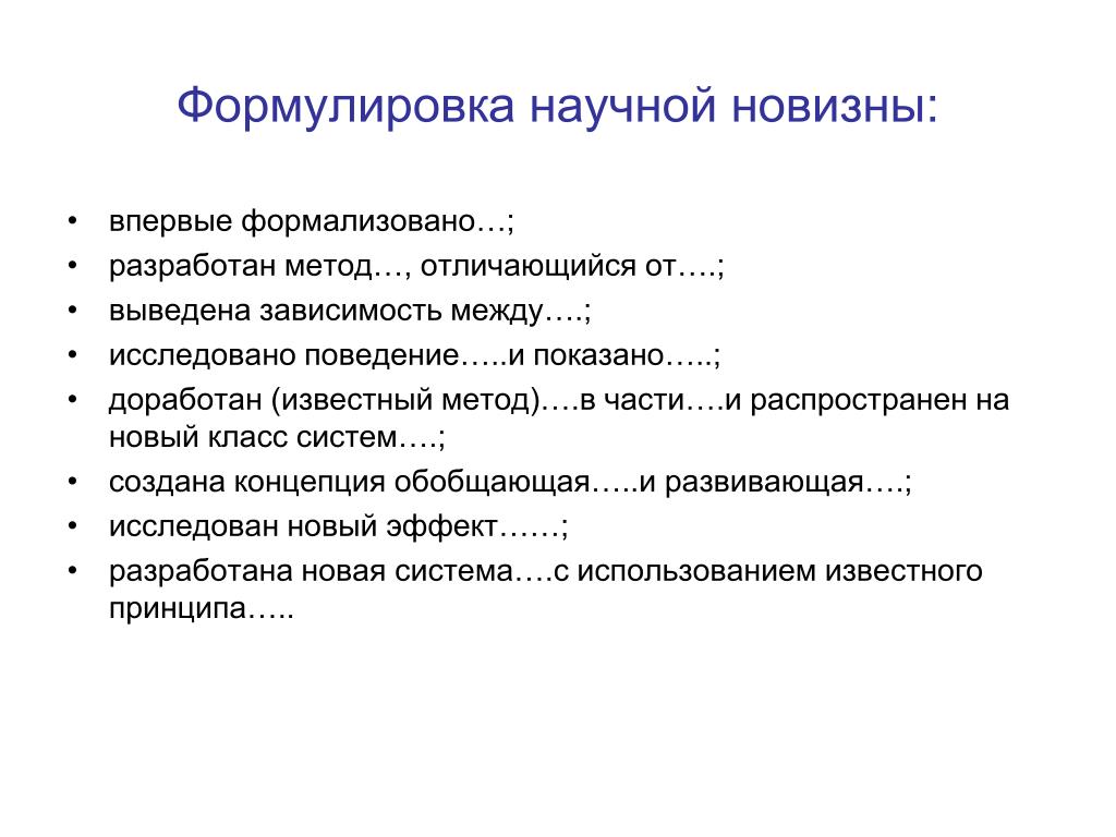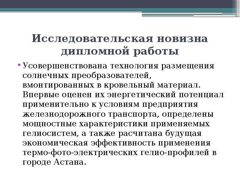 Если для выполнения дипломного проекта достаточно внедрить элементы научной новизны, то уже для диссертации следует максимально внедрить свое инновационное решение и продвинуть его до самых выводов. От этого зависит не только окончательный результат, но и оценка проделанного труда.
