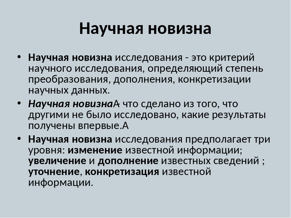 Чтобы дать оценку научной новизне проделанной работы, необходимо сначала разобраться, что это – диссертация или дипломный проект; поскольку в обоих этих случаях данное понятие имеет различное содержание и критерии оценивания.