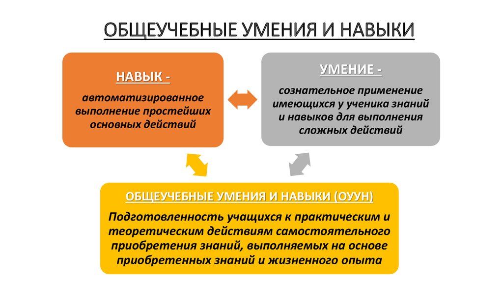 УМЕНИЕ. Усвоенный субъектом способ выполнения действий, обеспечиваемый совокупностью приобретенных знаний и навыков. Способность осознанно совершать действие, опираясь на сформированные навыки и приобретенные знания.