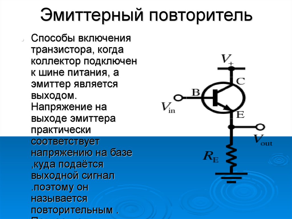 То есть транзистор – это своеобразный клапан, который при определённой силе тока, резко уменьшает сопротивление и пускает ток дальше (с коллектора на эмиттер).
