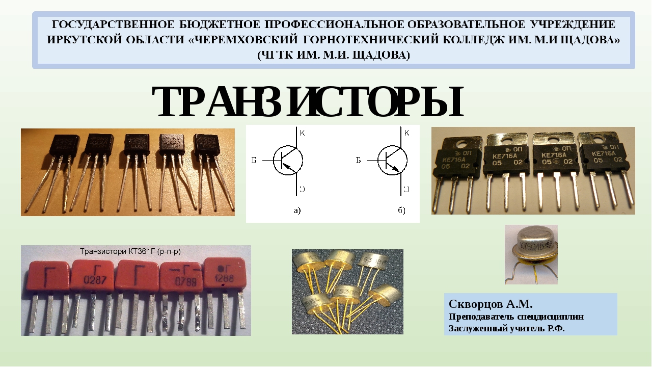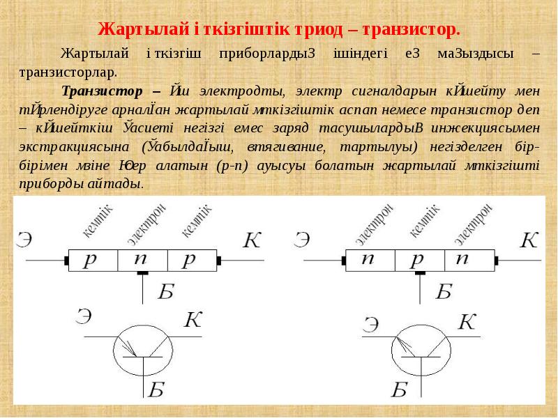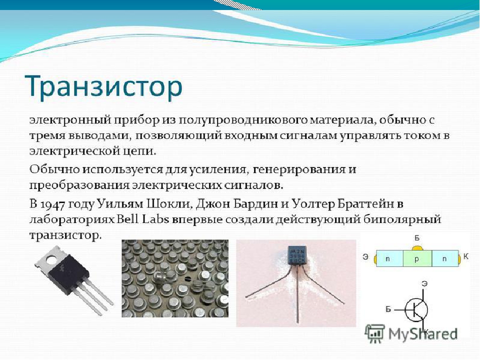 Транзистор – полупроводниковый прибор, предназначенный для управления электрическим током.