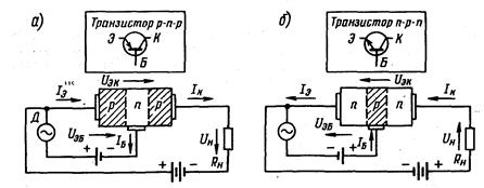 Разделяют транзисторы прямой и обратной проводимости. Транзисторы p-n-p называются транзисторами с прямой проводимостью, а транзисторы n-p-n – с обратной.![]()