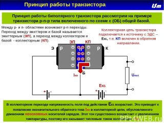В результате область базы обогатиться свободными электронами, часть из которых рекомбинирует с дырками, часть потечет к плюсу базы, а часть (большая часть) направится к коллектору.