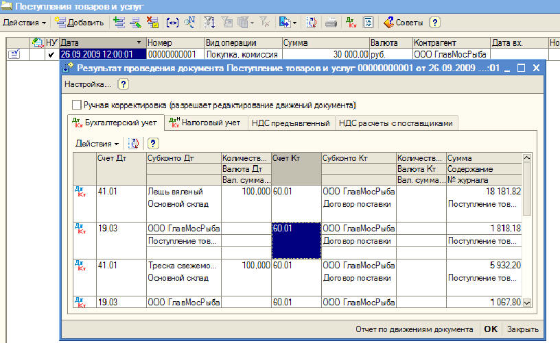 - Дт 41 Кт 60 ― отражена сумма поступления товара от поставщика без учета налога.