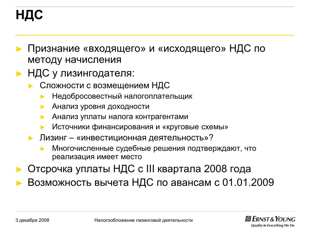 При такой работе обязателен к применению раздельный учет по НДС. Отсутствие подобной методики не позволяет налогоплательщику как учитывать входной НДС по отношению к налогооблагаемым операциям, так и брать полученные суммы для уменьшения базы по налогу на прибыль.