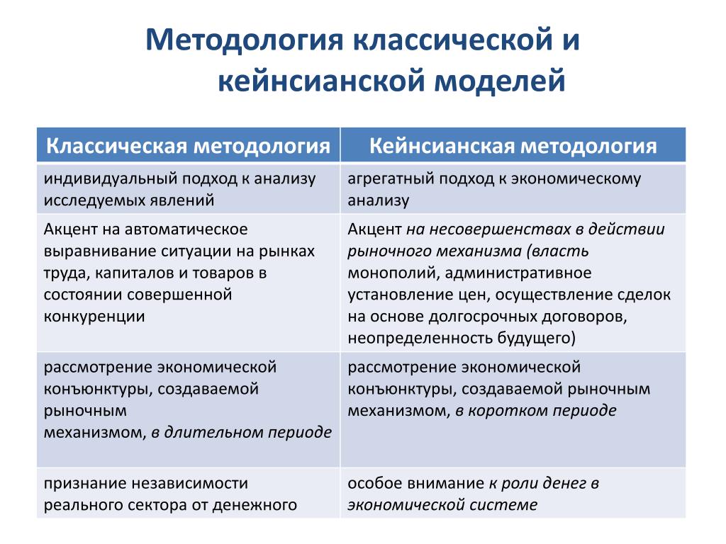 Во-первых, неприятие протекционизма в экономической политике государства и преимущественный анализ проблем сферы производства в отрыве от сферы обращения, выработка и применение прогрессивных методологических приемов исследования, включая причинно-следственный (каузальный), дедуктивный и индуктивный, логическую абстракцию. Одновременно подход с классовых позиций на наблюдаемые «законы производства» и «производительный труд» снимал любые сомнения по поводу того, что полученные с помощью логической абстракции и дедукции предсказания следовало бы подвергнуть опытной проверке. В результате свойственное классикам противопоставление друг другу сфер производства и обращения, производительного и непроизводительного труда стало причиной недооценки закономерной взаимосвязи хозяйствующих субъектов этих сфер («человеческого фактора»), обратного влияния на сферу производства денежных, кредитных и финансовых факторов и других элементов сферы обращения.