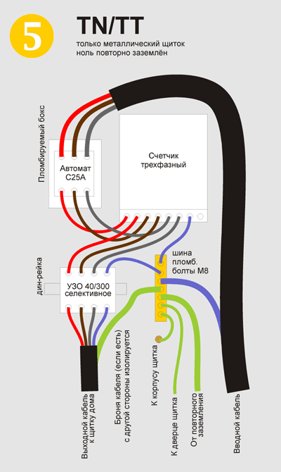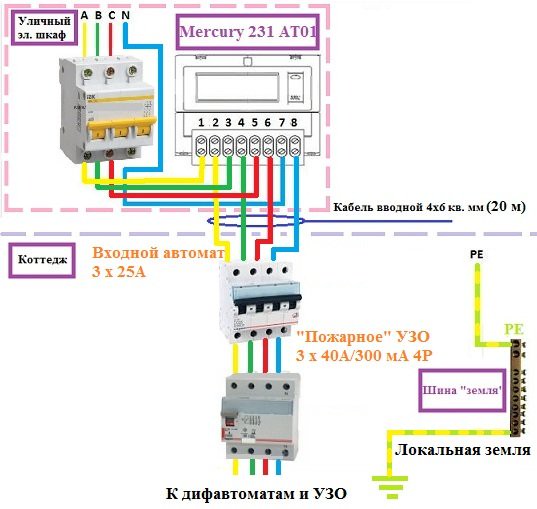 С другой стороны, если уровень максимально потребляемой мощности в частном домохозяйстве не превышает 9-ти кВт, допускается использование на вводе двужильного медного кабеля с сечением 6мм и установку автомата на 40A.