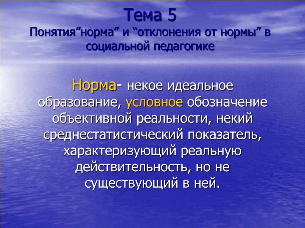 Для социальной педагогики понятия «норма» и «отклонение от нормы» — очень важные. Они используются для характеристики процесса развития и социального поведения ребенка.