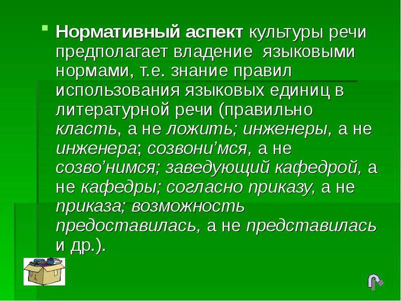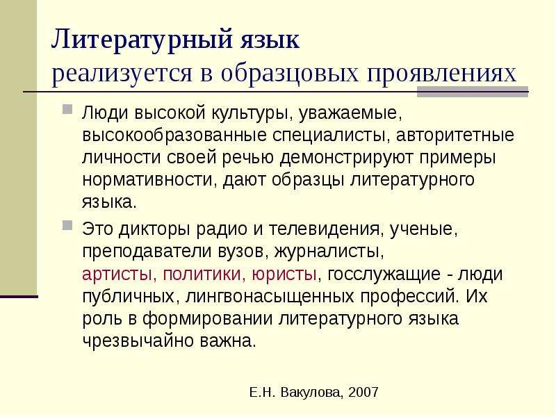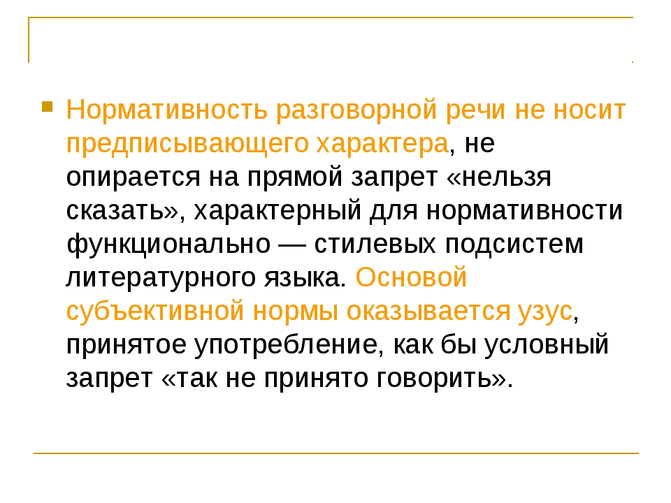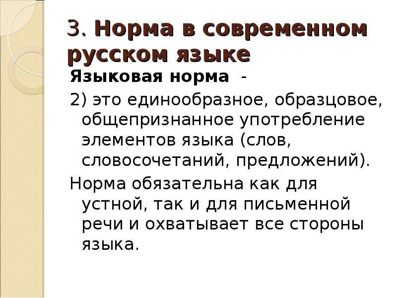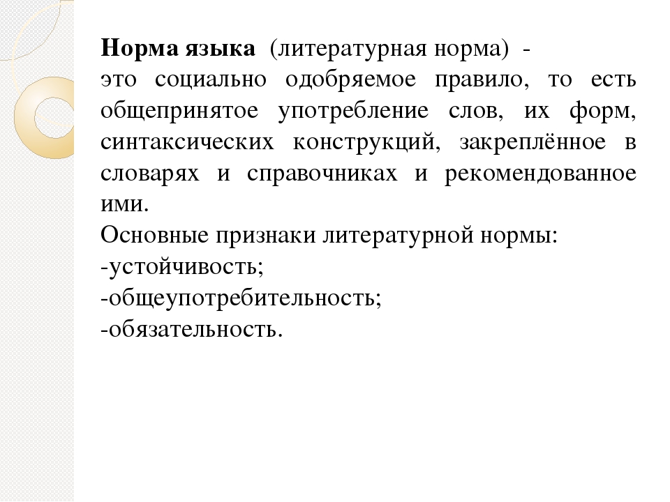 Языковая норма — это не только социально одобряемое правило, но и правило, объективированное реальной речевой практикой, правило, отражающее закономерности яз. системы и подтверждаемое словоупотреблением авторитетных писателей.