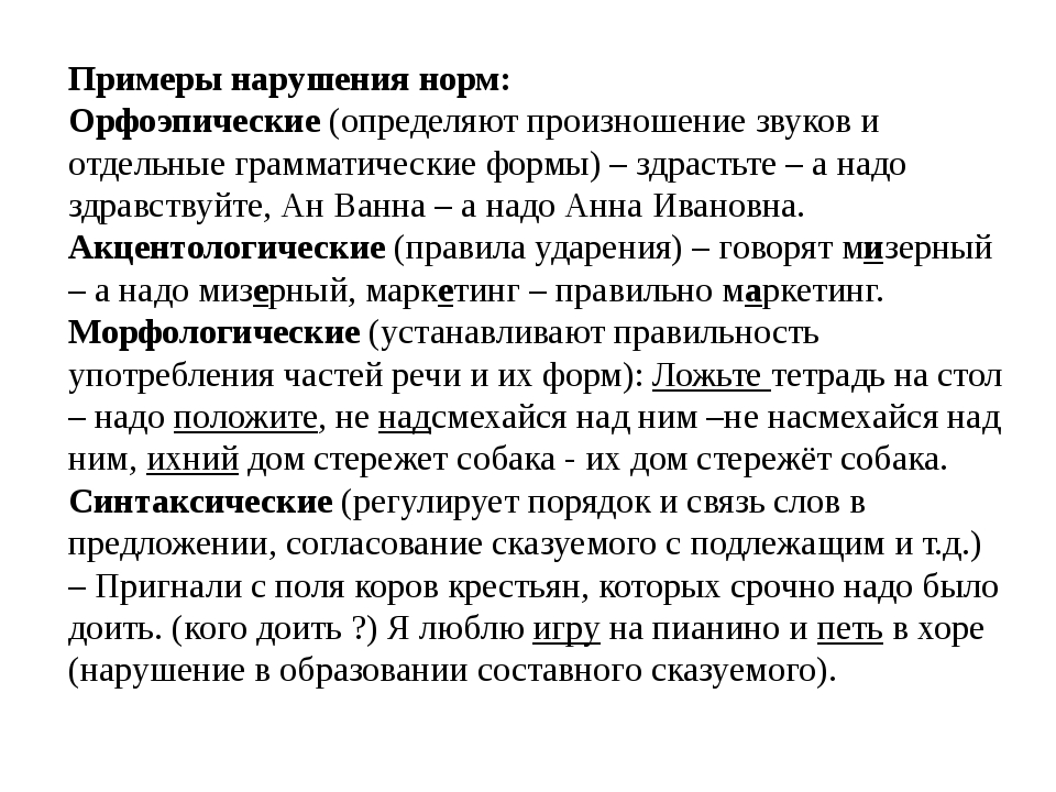 В области лексики, тесно связанной с материальной и духовной жизнью общества, а поэтому исключительно проницаемой со стороны разного рода внеязыковых воздействий, становление и развитие норм идет сложным и не всегда предсказуемым путем. Оценка приемлемости слова, правильности его употребления связана с идеологией, мировоззрением носителей языка, поэтому именно здесь чаще всего встречаются категорические суждения, нередко основанные на субъективном восприятии языковых фактов. Наиболее полное и объективное описание лексических норм содержится в авторитетных толковых словарях. - 2. Акцентные нормы
