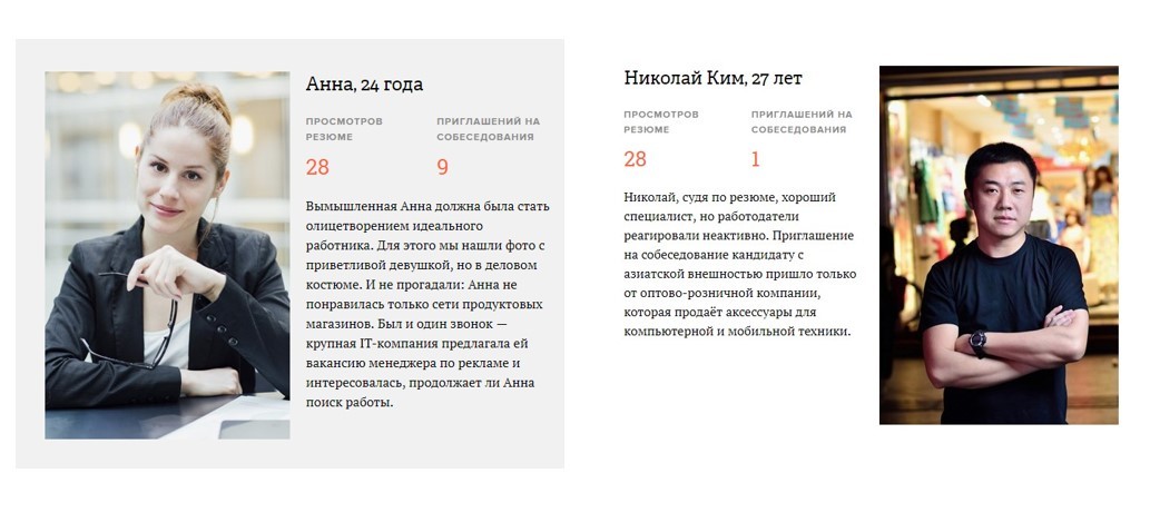 «Они очень волнуются, когда открывают резюме и видят перед собой чье-то лицо», — говорит она.