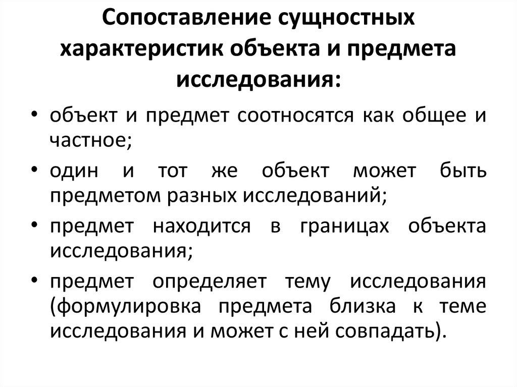 Для легкости восприятия терминов и безошибочного отделения одного от другого ниже представлены примеры объектов и предметов для исследований.