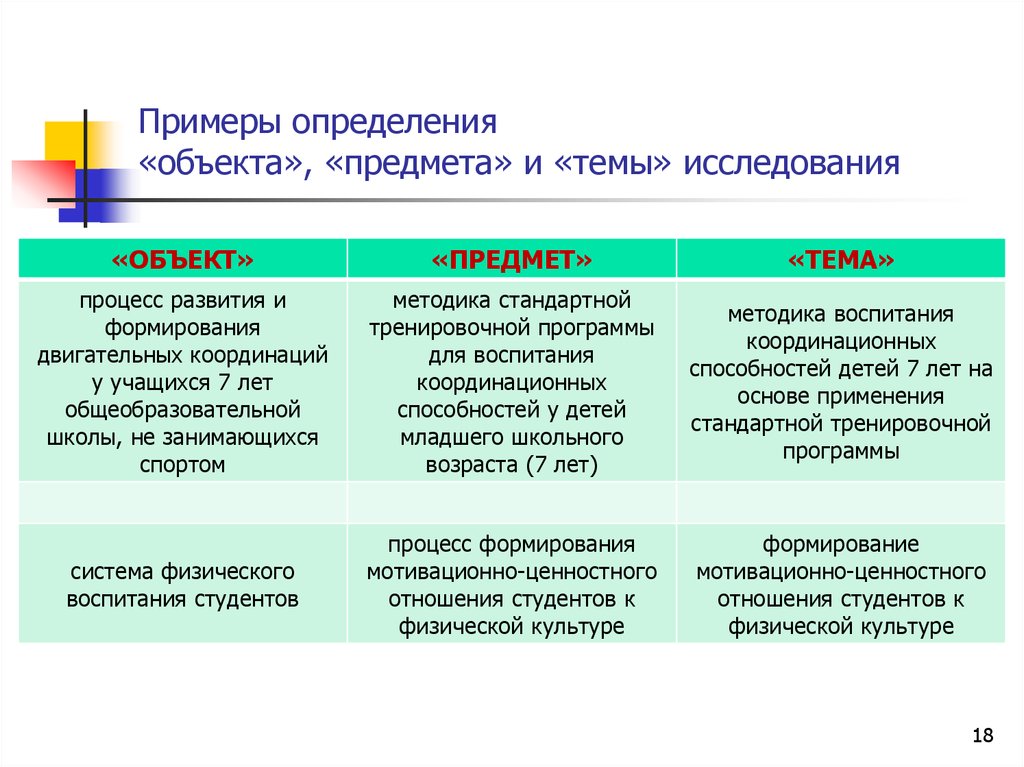 Примеры объекта и предмета исследования