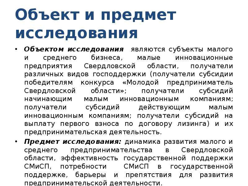 Объект исследования и предмет исследования