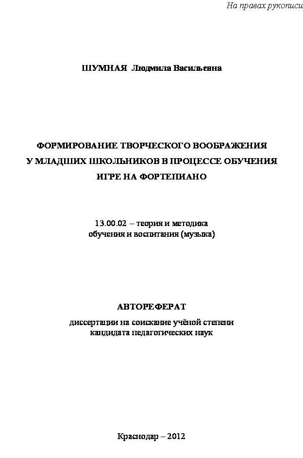 • Отметка «На правах рукописи», как предусмотрено требованиями;