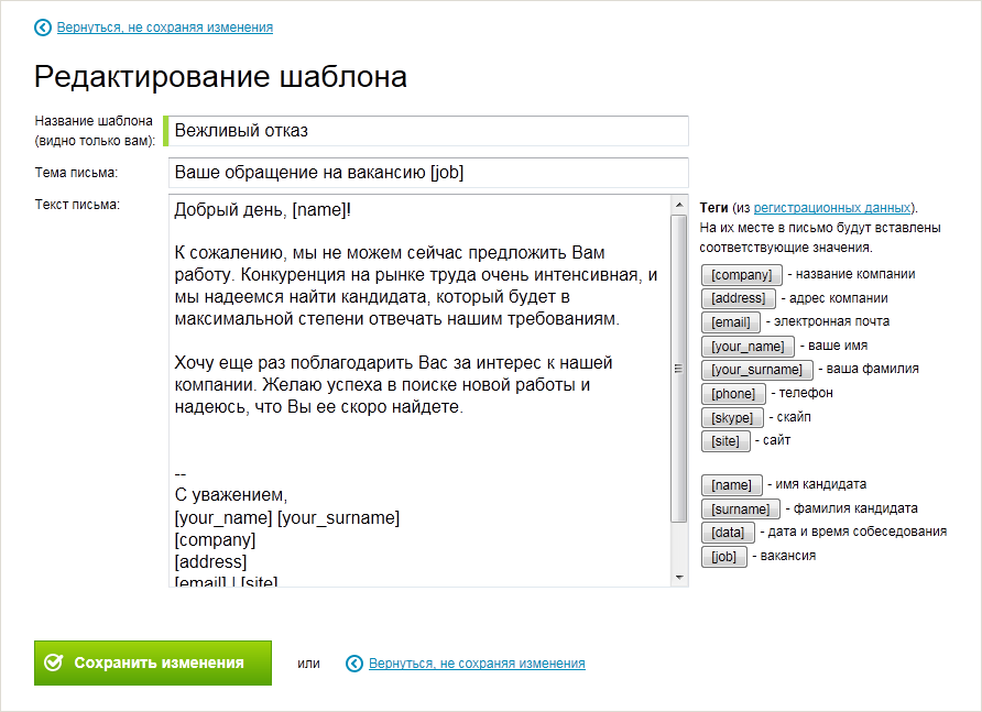 - ΠΠΈΡΠ½ΠΎΠ΅ ΠΎΠ±ΡΠ΅Π½ΠΈΠ΅ ΠΎΡΠ΅Π½Ρ Π²Π°ΠΆΠ½ΠΎ Π΄Π»Ρ ΡΡΠΎΠΉ ΡΠΎΠ»ΠΈ. Π£Π±Π΅Π΄ΠΈΡΠ΅ΡΡ, ΡΡΠΎ Π²Ρ Π²ΡΡΡΠ½ΠΈΠ»ΠΈ, ΠΊΡΠΎ ΡΠ²Π»ΡΠ΅ΡΡΡ Π½Π΅ΠΏΠΎΡΡΠ΅Π΄ΡΡΠ²Π΅Π½Π½ΡΠΌ ΠΊΠΎΠ½ΡΠ°ΠΊΡΠ½ΡΠΌ Π»ΠΈΡΠΎΠΌ Π΄Π»Ρ ΠΏΠΎΠ΄Π°ΡΠΈ Π·Π°ΡΠ²Π»Π΅Π½ΠΈΡ ΠΎ ΠΏΡΠΈΠ΅ΠΌΠ΅ Π½Π° ΡΠ°Π±ΠΎΡΡ, ΠΈ Π°Π΄ΡΠ΅ΡΡΠΉΡΠ΅ ΠΏΠΈΡΡΠΌΠΎ Π½Π΅ΠΏΠΎΡΡΠ΅Π΄ΡΡΠ²Π΅Π½Π½ΠΎ ΠΈΠΌ. Π’Π°ΠΊΠΎΠΉ ΠΈΠ½Π΄ΠΈΠ²ΠΈΠ΄ΡΠ°Π»ΡΠ½ΡΠΉ ΠΏΠΎΠ΄Ρ ΠΎΠ΄ ΡΠ½ΠΈΠ·ΠΈΡ ΡΠ°Π½ΡΡ Π½Π° ΡΠΎ, ΡΡΠΎ Π²Π°Ρ ΠΎΡΠ²Π΅ΡΠ³Π½ΡΡ. ΠΠ·Π±Π΅Π³Π°ΠΉΡΠ΅ ΠΎΠ±ΡΠΈΡ ΠΏΡΠΈΠ²Π΅ΡΡΡΠ²ΠΈΠΉ.