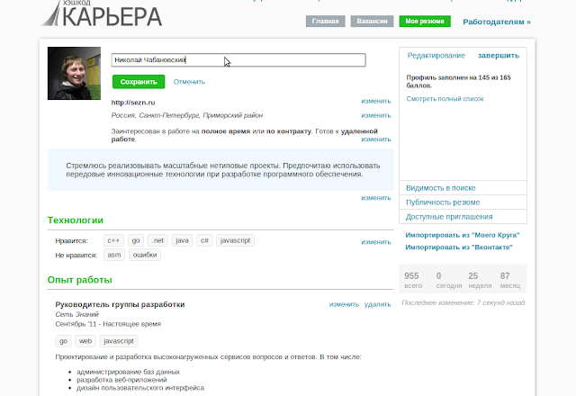 - Π Π°Π·Π²ΠΈΠ²Π°ΠΉΡΠ΅ ΡΡΠΎ, ΠΏΠΎΠ΄ΡΠΎΠ±Π½ΠΎ ΡΠ°ΡΡΠΊΠ°Π·ΡΠ²Π°Ρ ΠΎ ΡΠ²ΠΎΠ΅ΠΉ ΠΊΠ°ΡΡΠ΅ΡΠ΅ ΠΈ Π½Π°Π²ΡΠΊΠ°Ρ
