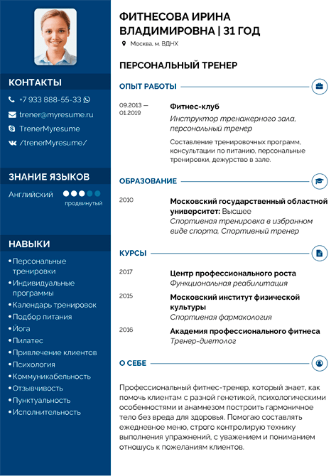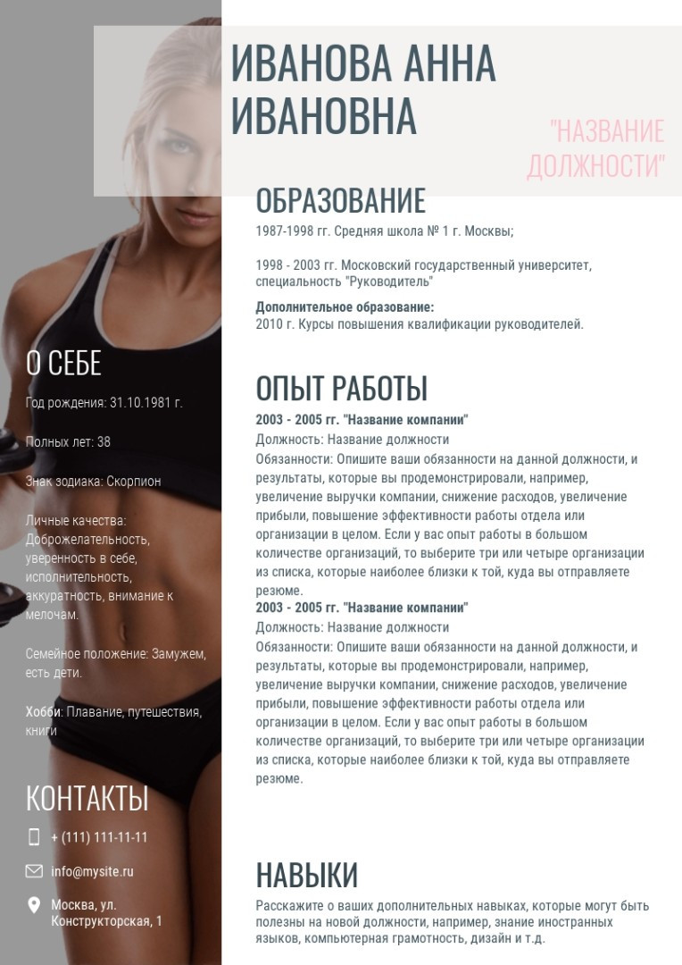 Образец резюме – инструктор по спорту | Образцы резюме – шаблоны – чистые бланки – анкеты