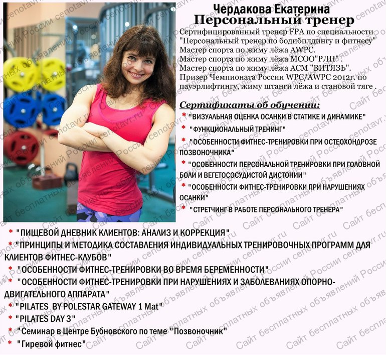 - опыт работы инструктором и составления индивидуальных и общих программ упражнений;