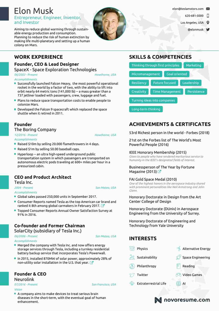 - Резюме выдержано в деловом стиле.