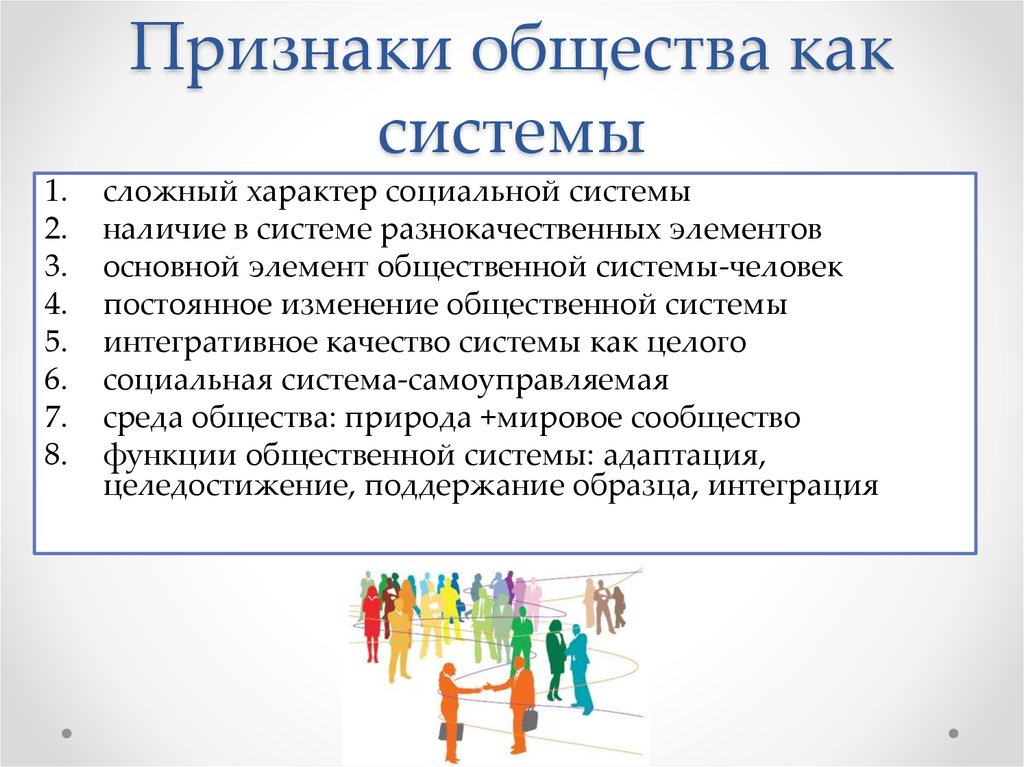 Признаки общества как социальной системы таковы: