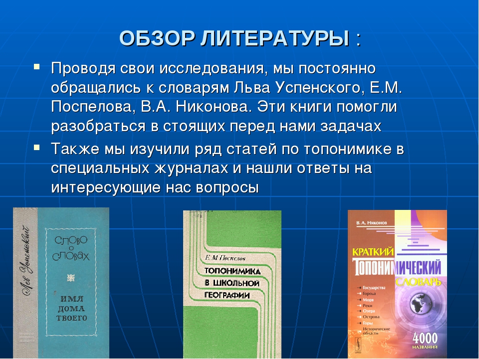 Он отражается после методологии исследования путем перечисления наиболее важных трудов, которые легли в основу проекта, или фамилий и инициалов их авторов.
