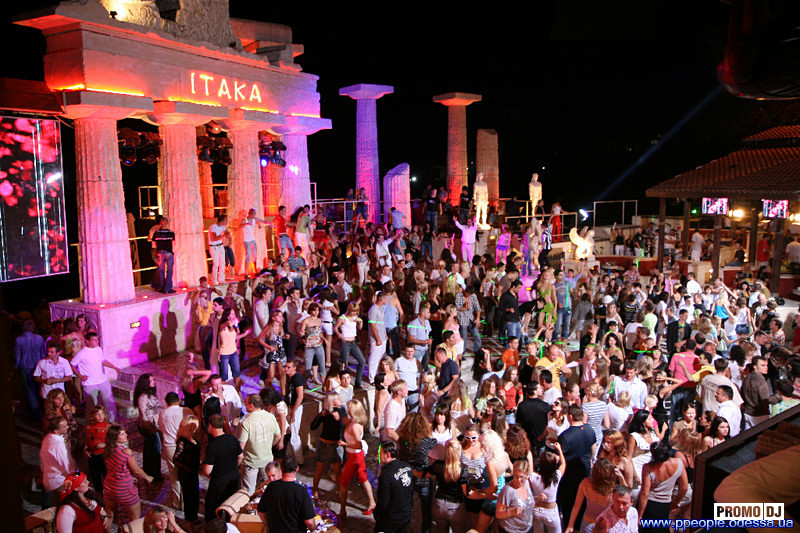 ИТАКА – второй по популярности летний ночной клуб Одессы после Ибицы. Он находится в Аркадии и работает в теплое время года. Заведение оформлено в античном стиле, как в Древней Греции. Здесь проходят корпоративные вечеринки и концерты популярных исполнителей из Украины, Европы и США.Клуб имеет две большие танцплощадки и может одновременно принять до 3 тысяч человек. Это концертная арена вечером, которая днем превращается в пляжный комплекс с бассейнами. Также есть ресторан европейской кухни «ЗУММА».
