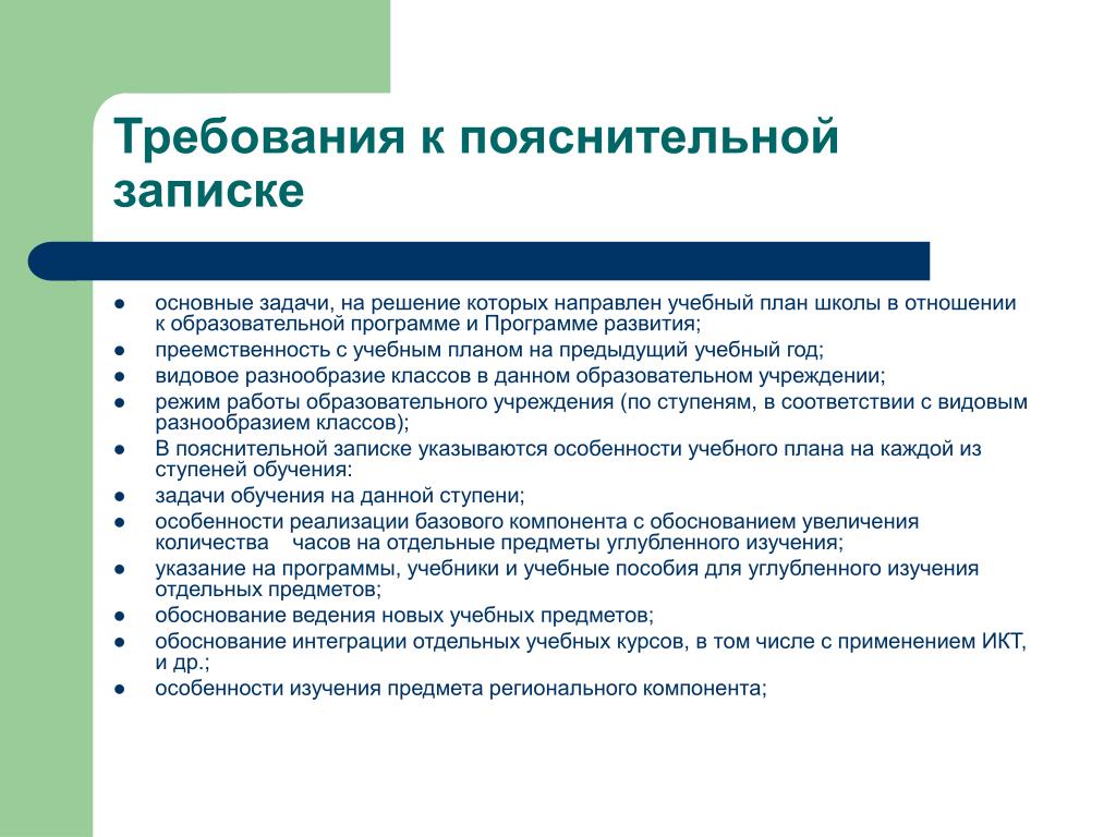 - Общие требования к пояснительному документу