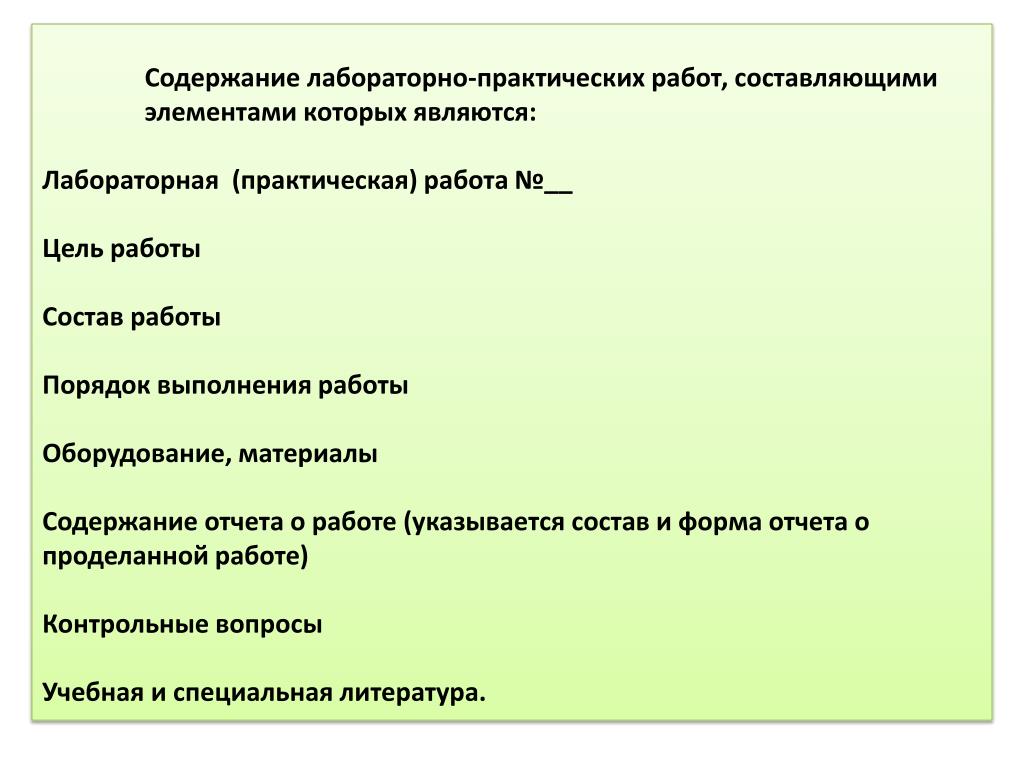 Лабораторная работа как вид учебного занятия – один из вариантов формирования учебной деятельности. В ходе проведения работы под руководством преподавателя студенты самостоятельно выполняют опыты в соответствии с заданием.