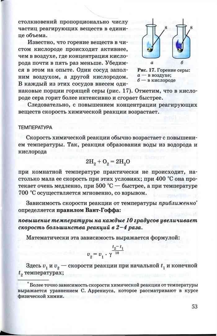 О скорости реакции можно судить, сравнивая интенсивность окраски образующегося йода, которая зависит от температуры и от концентрации реагирующих веществ.