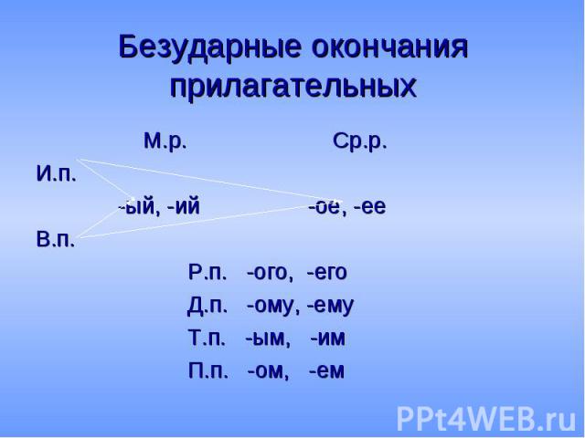 Окончания прилагательных
