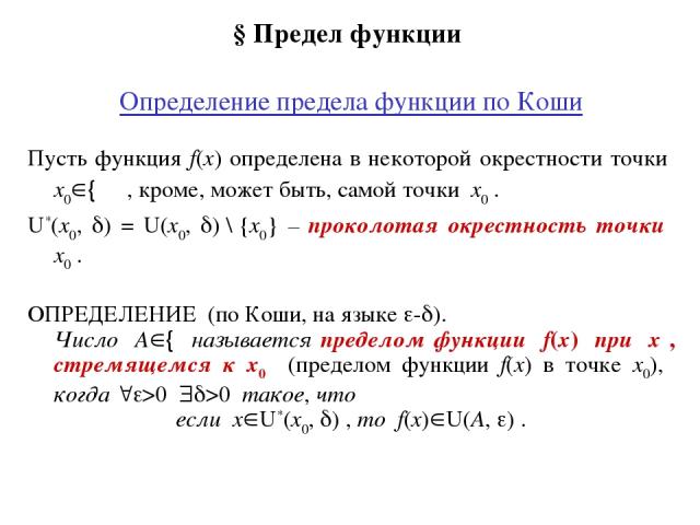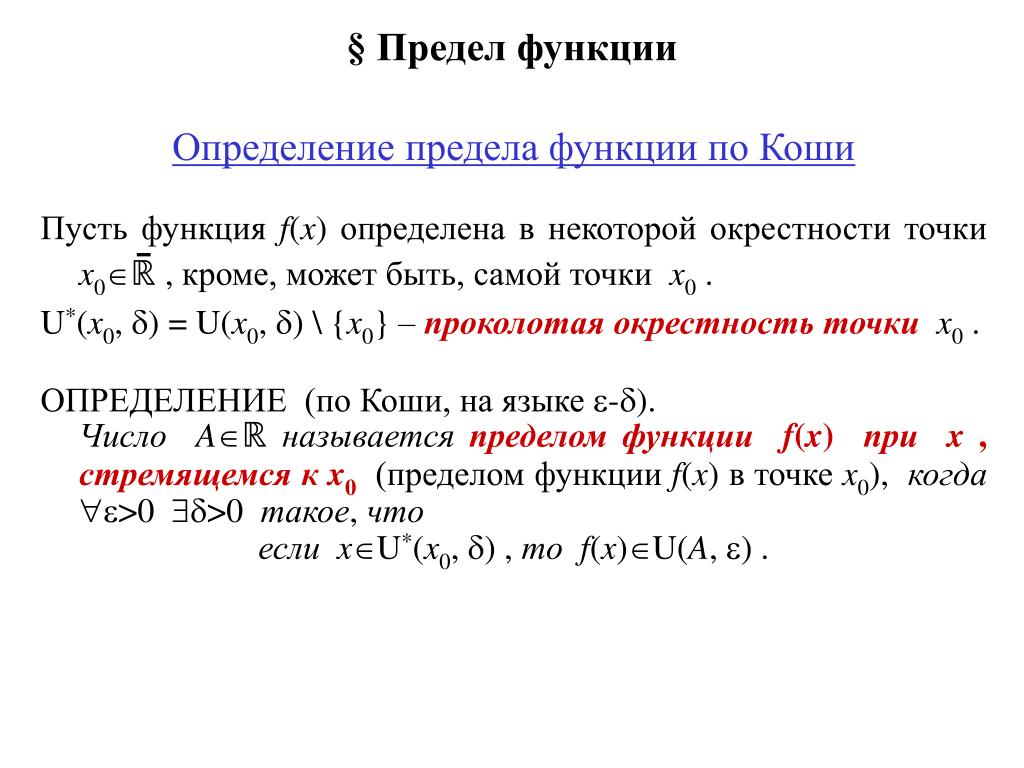 Аналогично, чтобы определить предел функции по Коши, имеем: