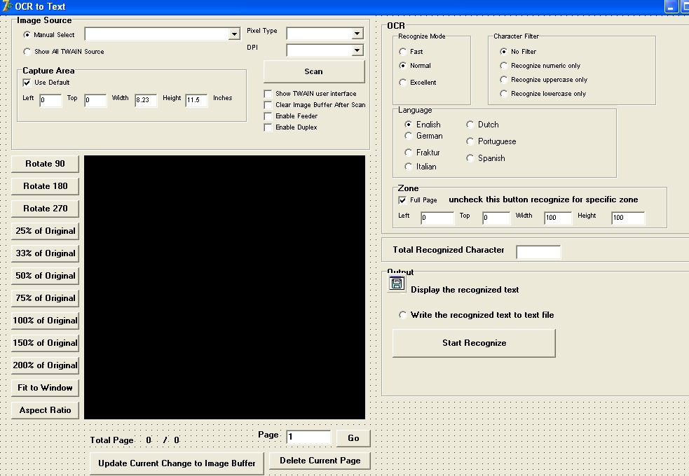 - Настройте его для чтения непосредственно со сканера или путем добавления страницы (JPG, TIFF, BMP форматы).