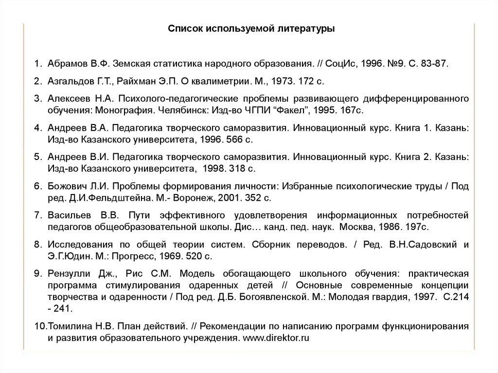 ОБРАЗЦЫ ОФОРМЛЕНИЯ БИБЛИОГРАФИЧЕСКОГО ОПИСАНИЯ В СПИСКЕ ИСПОЛЬЗОВАННЫХ ИСТОЧНИКОВ