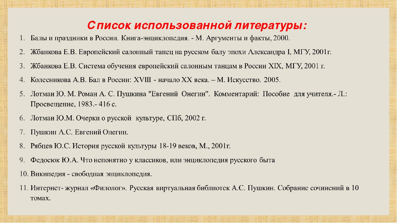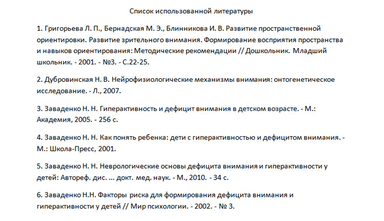 Сведения об источниках печатают с абзацного отступа, после номера ставят точку. Содержание сведений об источниках должно соответствовать Образцам оформления библиографического описания.