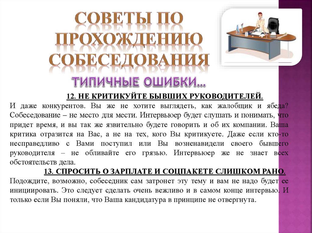 Источник: https://naim.guru/shtat/priem-na-rabotu/sobesedovanie/kak-projti/oshibki-soiskatelya.html