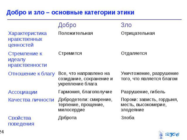 Добро и зло – наиболее общие формы моральной оценки, разграничивающие нравственное и безнравственное.