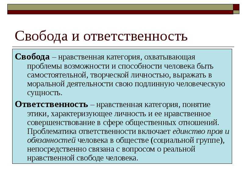 Ответственность – категория этики, характеризующая личность с точки зрения выполнения ею нравственных требований.