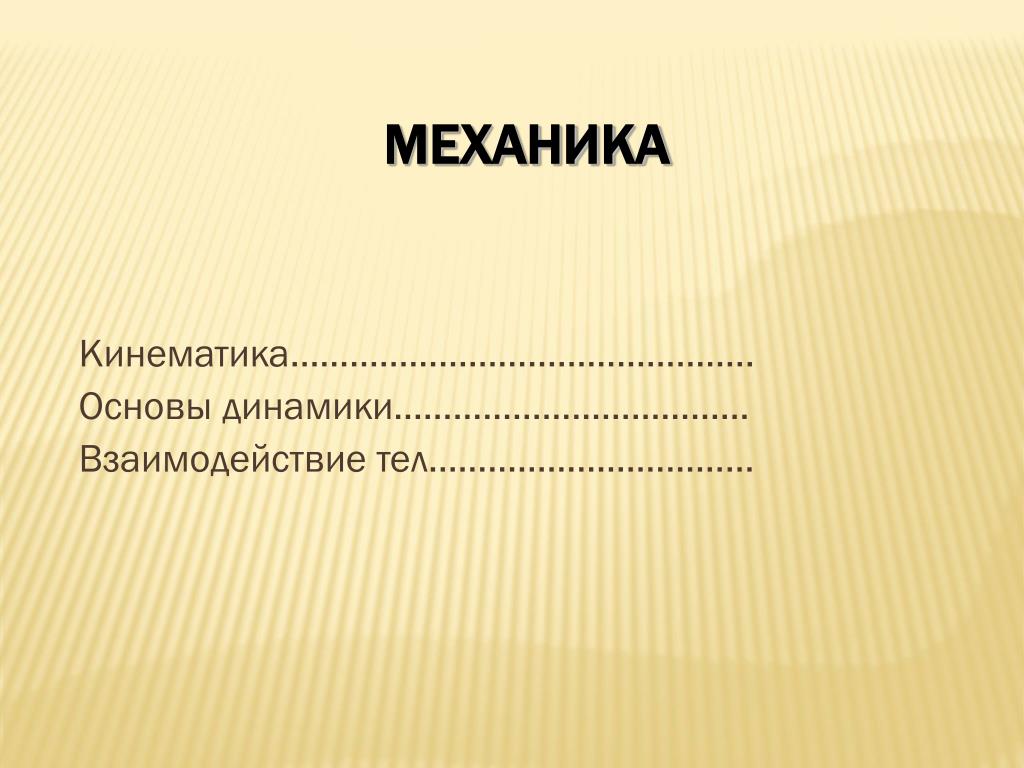 Динамика рассматривает действие одних тел на другие как причину, определяющую характер движения тел. Взаимодействием тел принято называть взаимное влияние тел на движение каждого из них.