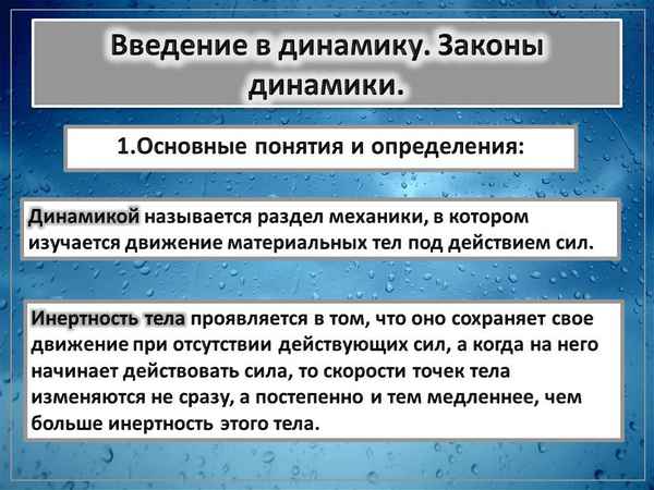 Раздел механики, изучающий законы взаимодействия тел, называется динамикой. Законы динамики были открыты великим ученым И. Ньютоном (1687 г.). Три закона динамики, сформулированные Ньютоном, лежат в основе так называемой классической механики.