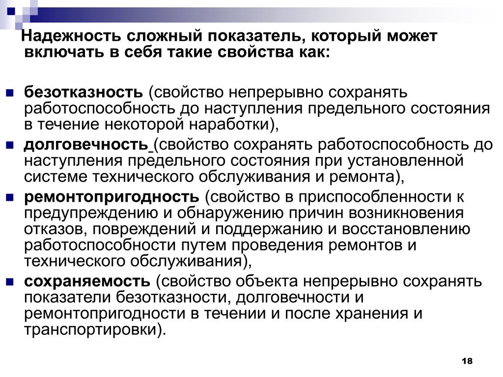 Свойства и показатели надежности