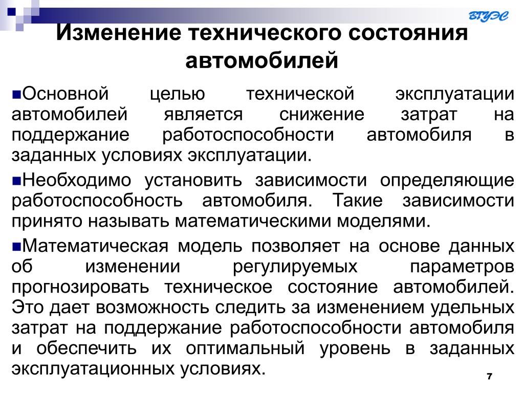 Прогнозирование технического состояния ТС как элемент управления их работоспособностью